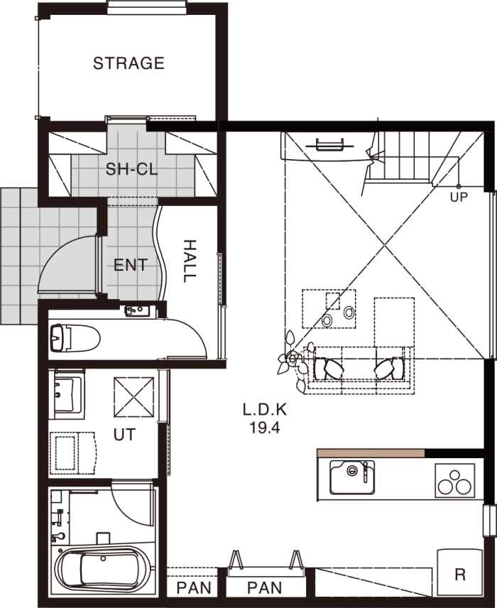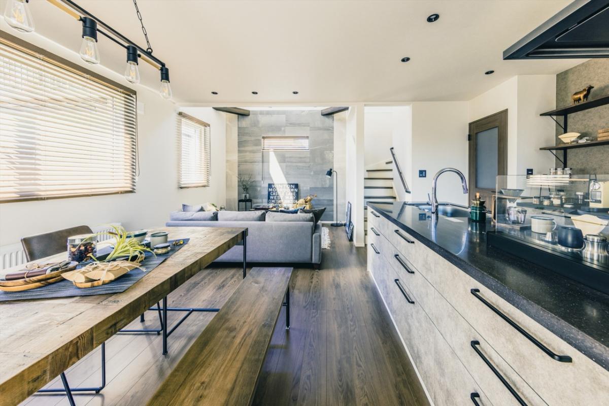 - 19.4帖の広々LDK:のびのびくつろげる、開放感たっぷりのリビングダイニング。家族の時間がもっと特別に。
