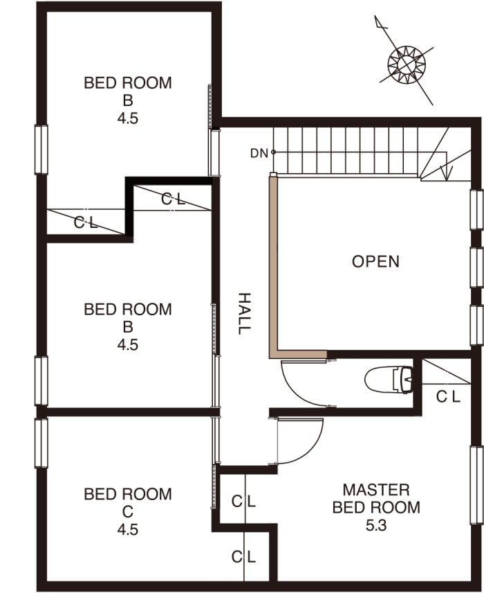 - 吹き抜けリビング:自然光がたっぷり降り注ぐ明るい空間。家族が集まり、自然と会話が生まれる場所です。