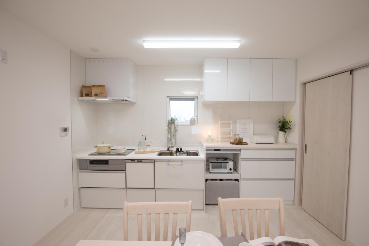 - 壁付けキッチンで広々空間: リビング・ダイニングを広く活用し、開放的な暮らしを実現。