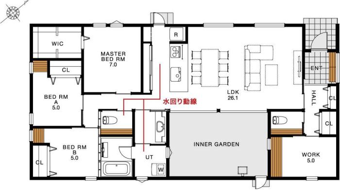 - 26帖の広々LDK:家族みんなが快適に過ごせる広さ。