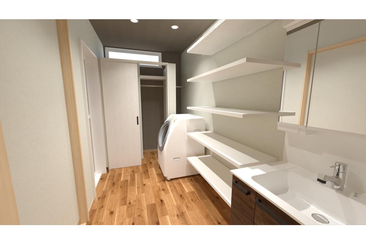 - 動きやすい回遊動線:玄関〜洗面〜LDKがスムーズにつながる。
