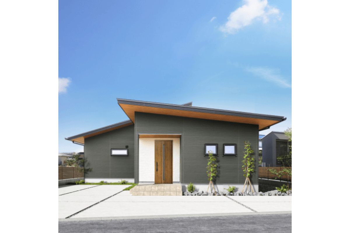 - かけ違い屋根の外観:シンプルな平屋に個性と存在感をプラス。