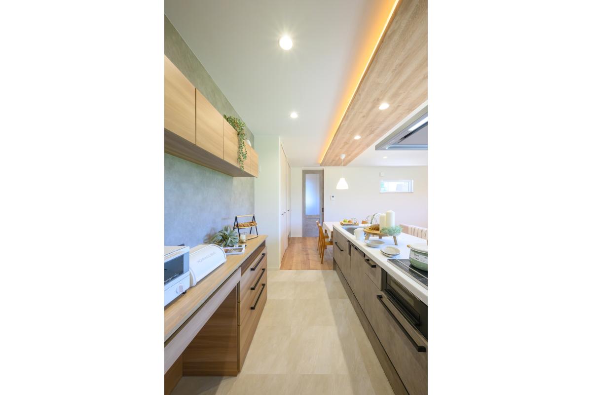 - オープンキッチンのLDK:開放感があり、家族の会話も弾む。