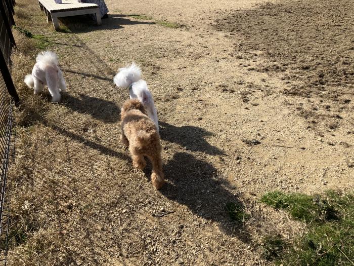 茶色の毛のトイプードルがいました 2歳だそうです 7歳のコロン、負けずに一緒に走ってました また、お会い出来るといいですね!