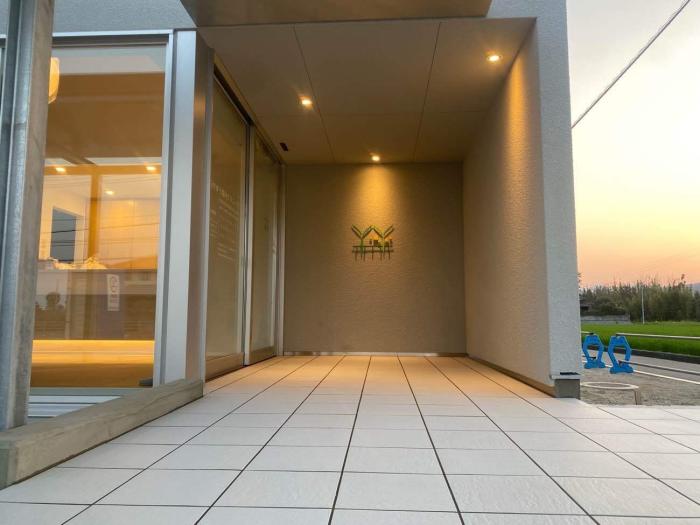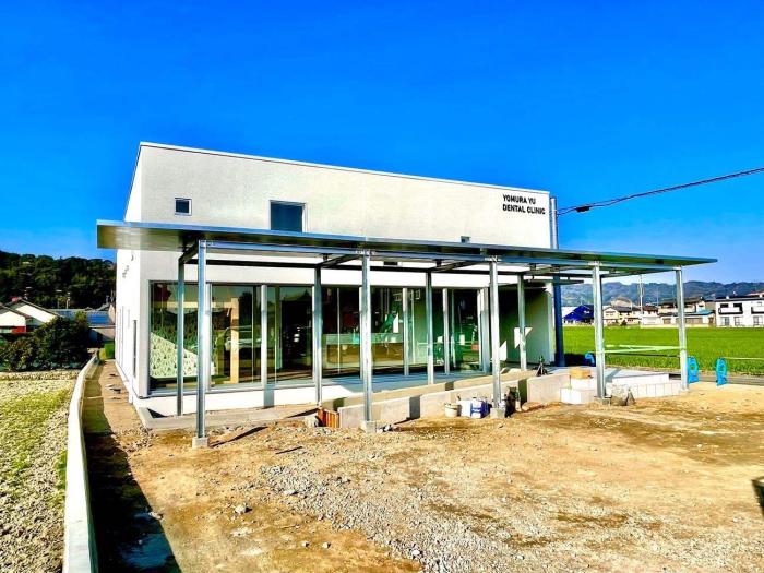 四村ゆう歯科クリニックですが 仕上げ工事・外構工事ともに順調に進んでいます! ポーチのタイルも貼れて 看板も付きました。