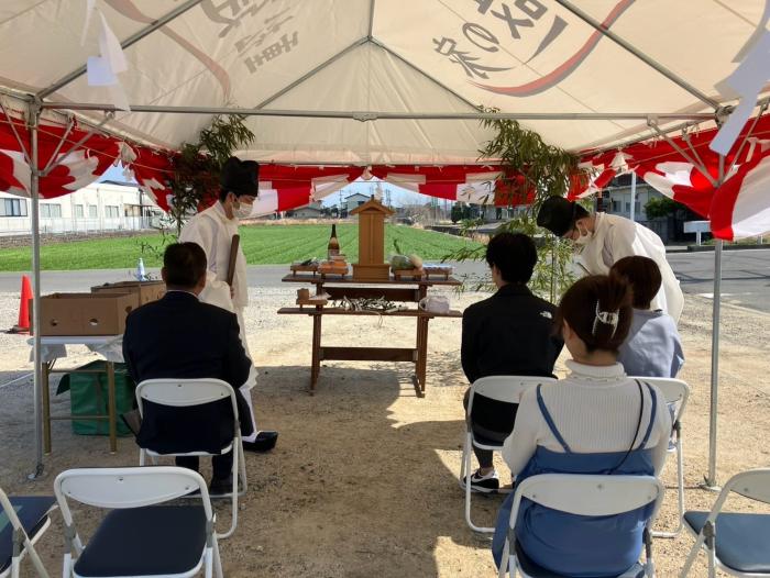 こんにちは ムカイヤマです。 山火事長引いていますね・・・・ 今日からの雨で鎮火を願っております。 先日、中寺の地鎮祭と上徳のお引き渡しを行いました。 風か強かったですが天候にも恵まれました😍