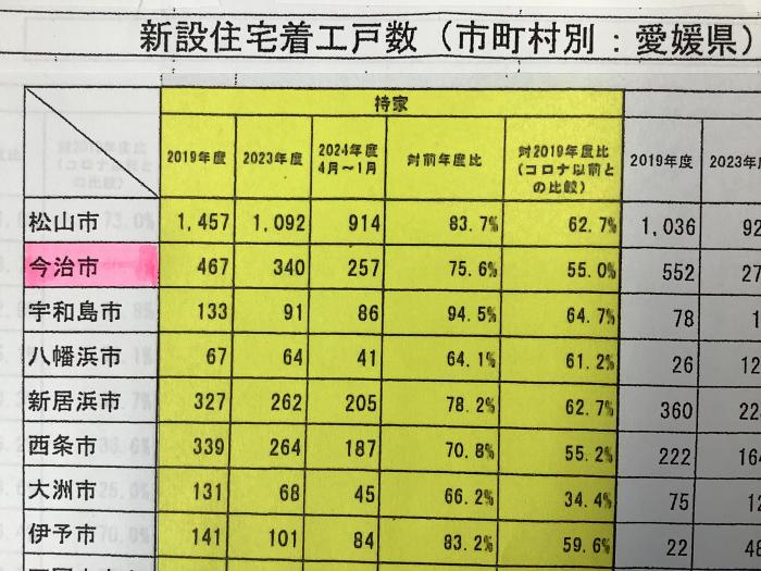 今治市の持家(注文住宅)の戸数は2023年度(2023年4月〜2024年3月)、340戸でした