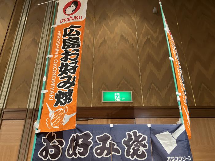 懇親会では同友会の会員会社であるオタフクさんのお好み焼き