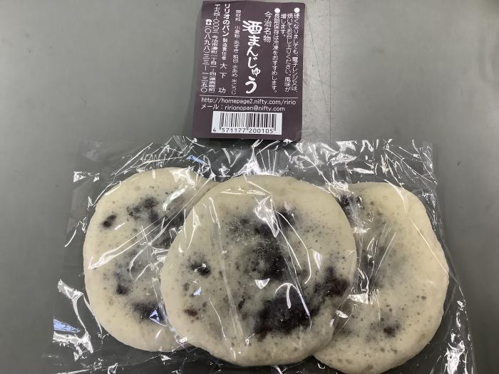 専務と二人で、県病院の前を車で走っていたら 「今治名物 酒まんじゅう」の看板を見つけました