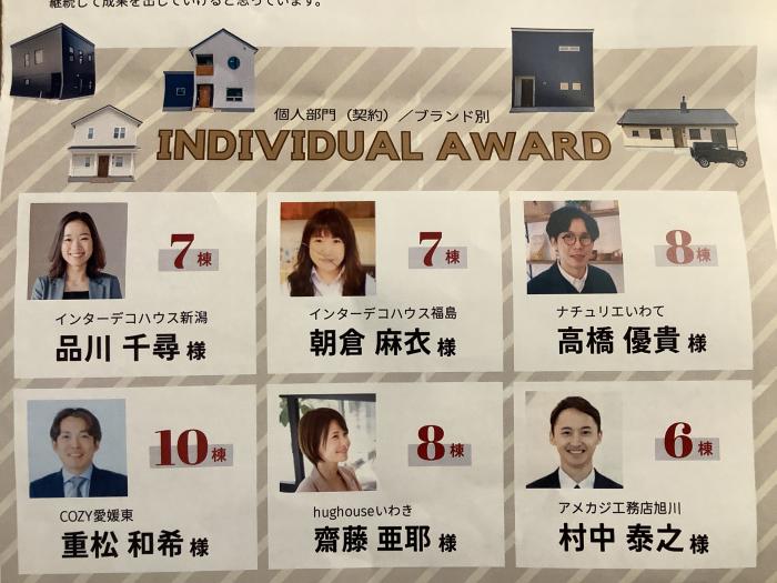 COZY個人部門で重松和希は10棟でトップを獲得しました ダブル受賞です