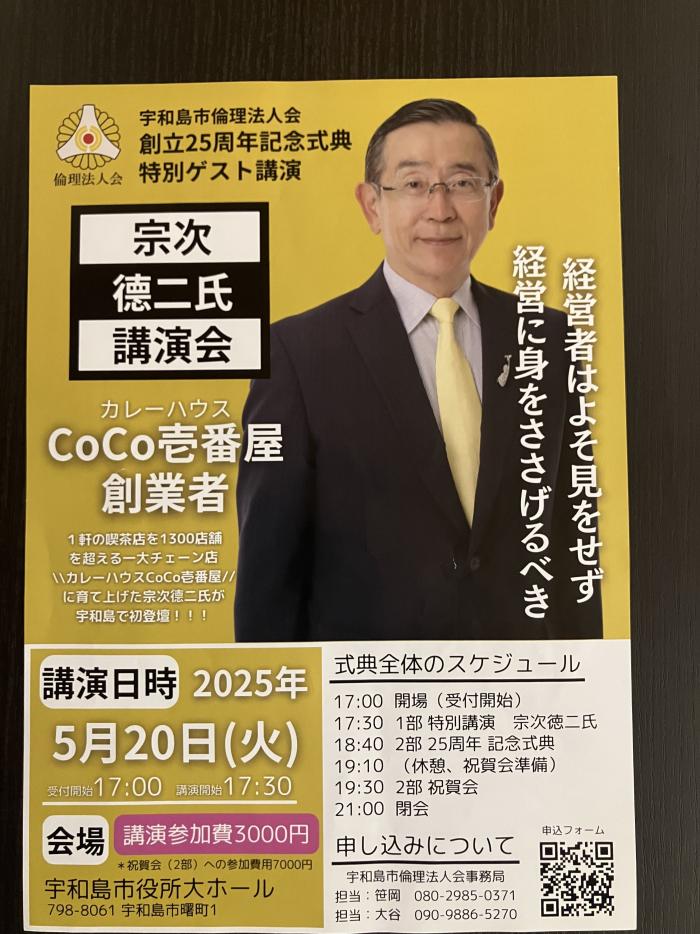 CoCo壱創業者の宗次徳二さんの講演会が開催されました
