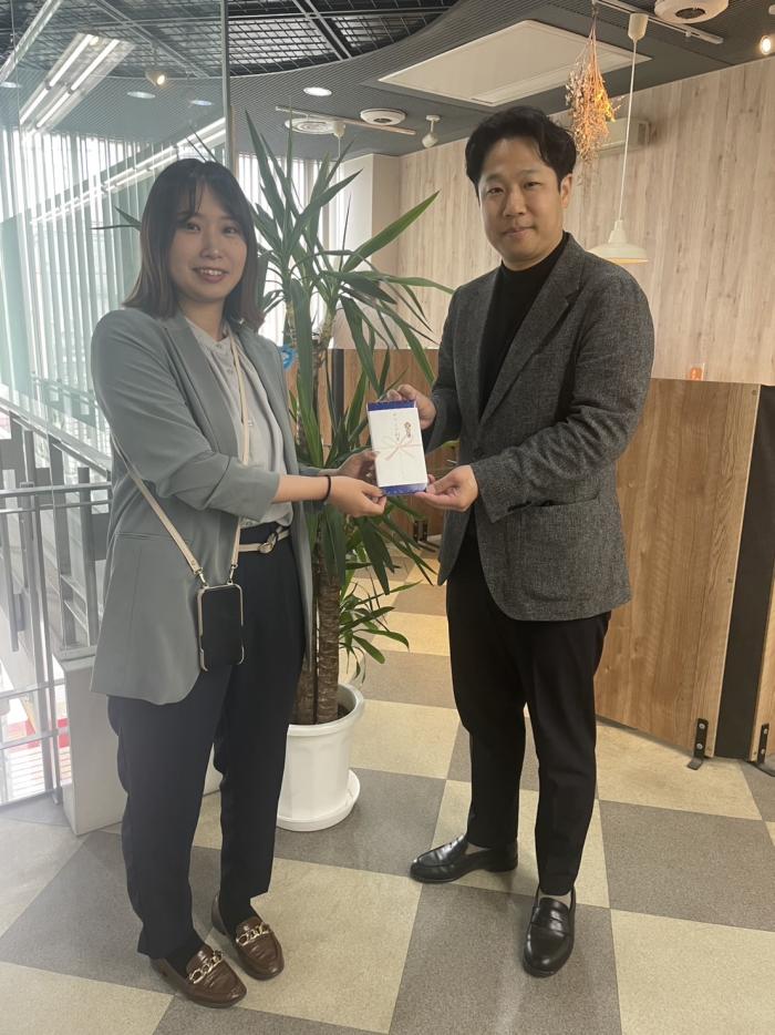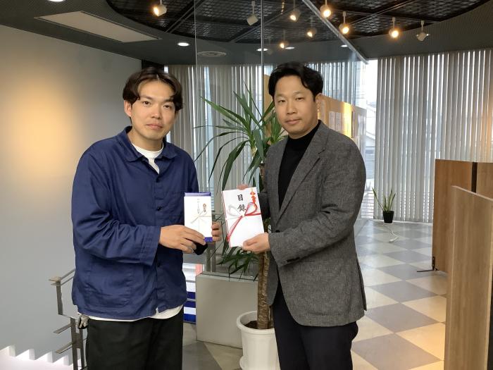 個人部門で、常務が一位を獲得しました ジョンソンホームズの川村さんから賞品をいただきました