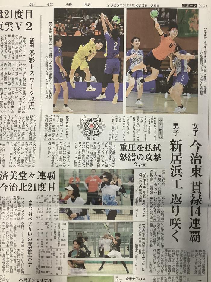 今治東高校女子ハンドボール部さん! 第79回県高校総体 女子ハンドボール14連覇おめでとうございます! プレッシャーもあったと思います 素晴らしい!