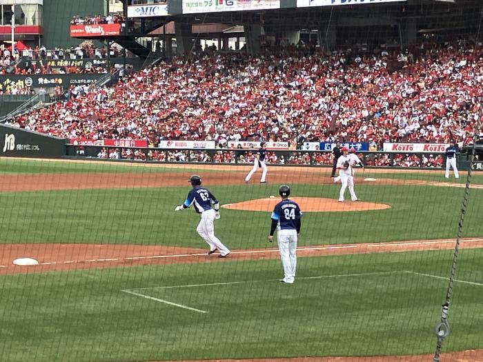 結果はカープが勝ちました 西武エースの今井投手がカープ野球に手こずってました・・・