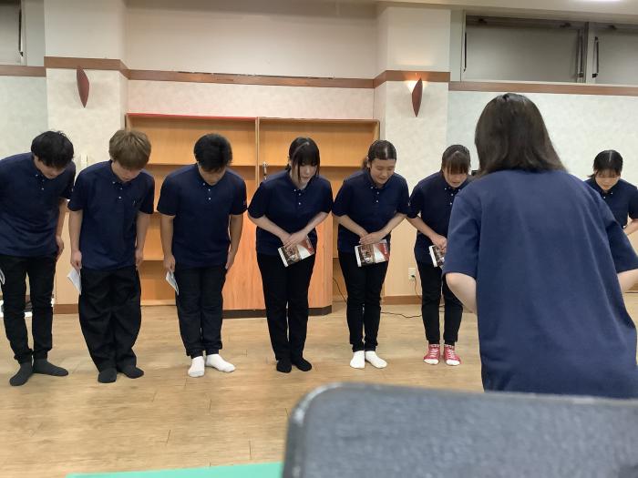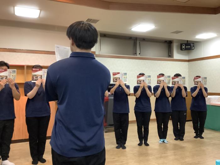 平均年齢20歳、今年4月入社の新卒の方が活力朝礼を実演しました