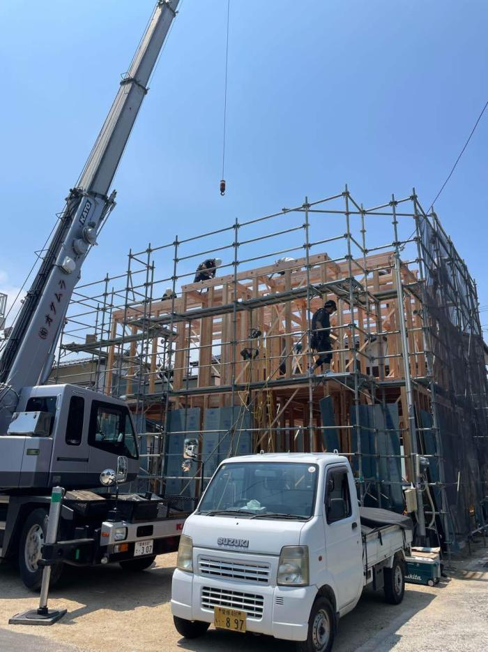 こんにちは!ヒガキどんです(^^♪ 梅雨があけたと思ったら、暑さが尋常じゃないですね。 毎年、夏はこんなに暑かったっけー?と思ってしまう。 これから3~4か月暑いのですね。。。頑張ろう。。。 さてさて、梅雨も明けて、雨の心配もなく建前ができました!