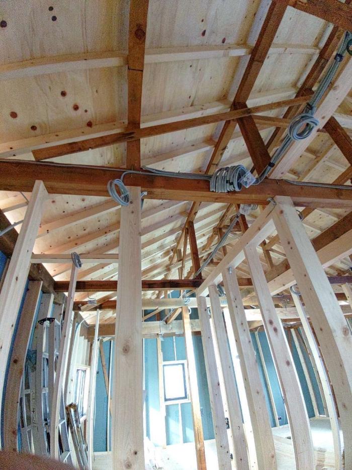 こんにちは! フルリノベーション工事の進捗です! 水回りも交換し 断熱材もすべて、吹付断熱へと変更し、 耐震補強工事も行っています!