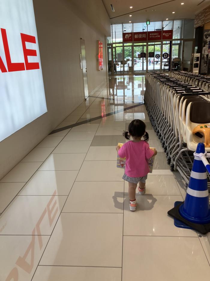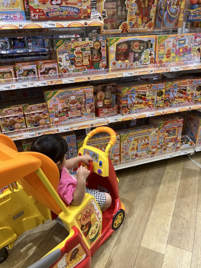 アンパンマンのカートに乗って、おもちゃ売り場へ