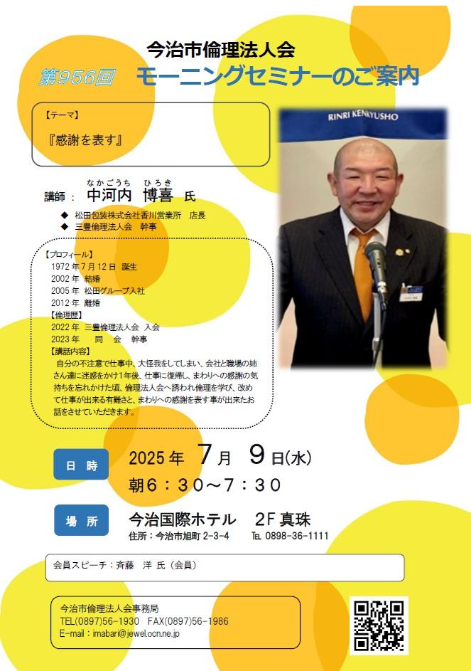 今治市朝倉出身の中河内さんと記念写真! 涙あり笑いありの素晴らしいお話ありがとうございました!