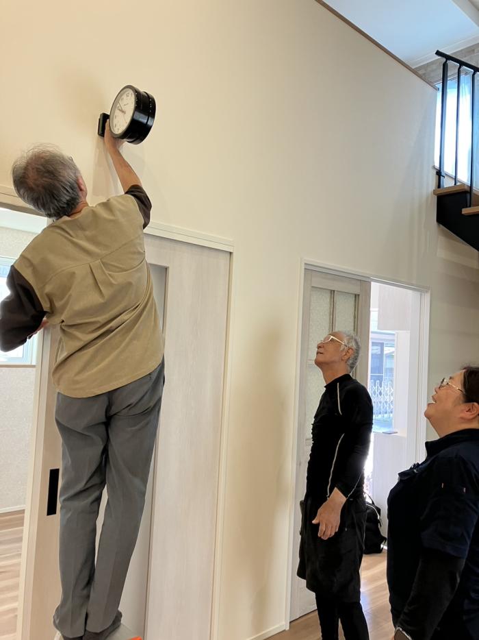 こんにちは竹村です。 本日はロフトがあるお家のお引渡しを迎えました。 早速ステーションクロックをとりつけています。 アンティークとインダストリアルが入った素敵なお家です。