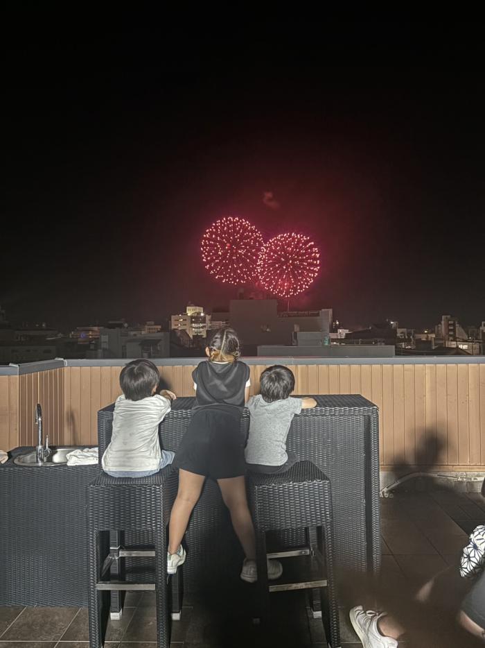 今回の花火は、晴れていて風もなくきれいな花火を見ることができました。