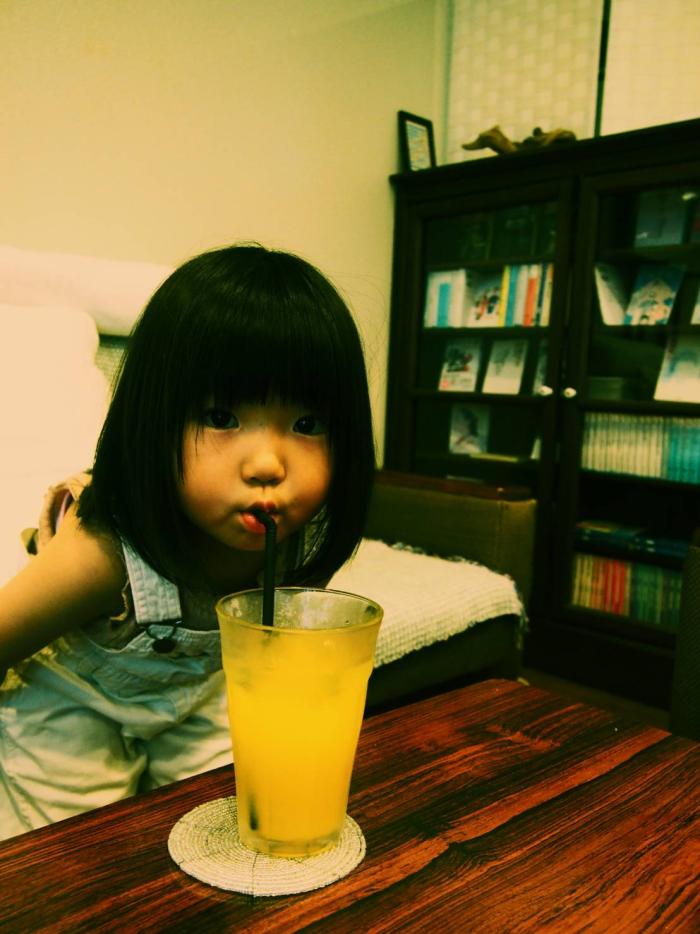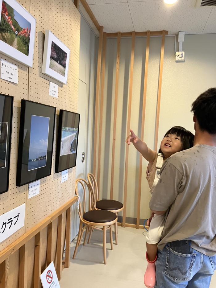 こんにちは竹村です。 お盆 みなさんゆっくりできましたか。 お盆前の休日 波方のシクロカフェで重松建設写真部の展示がありいってきました。 今回私は娘しばりだったので 自分をみて嬉しがるむちこ。 オレンジジュースを飲むむちこ。