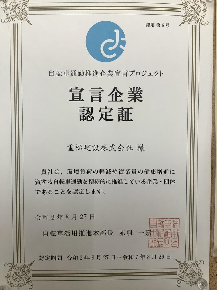 重松建設は「自転車通勤推進企業」を宣言してます!