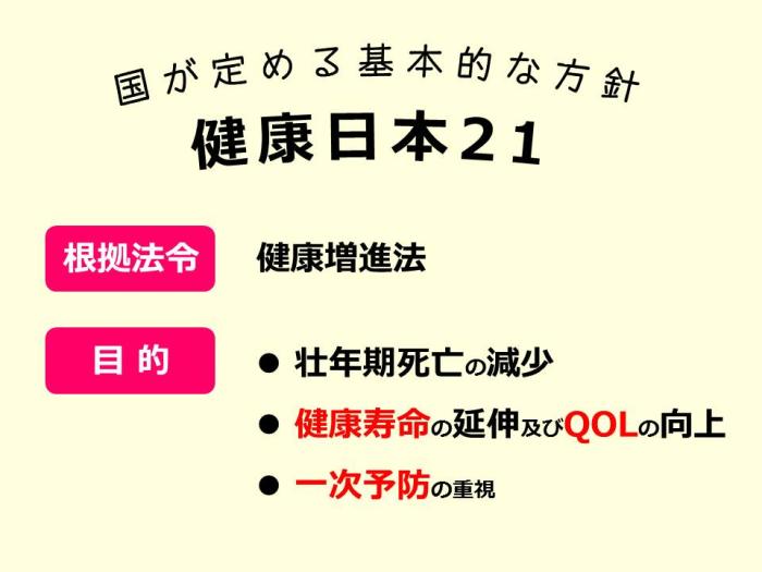 平成12年からは「健康日本21(21世紀における国民健康づくり運動)」という通称も