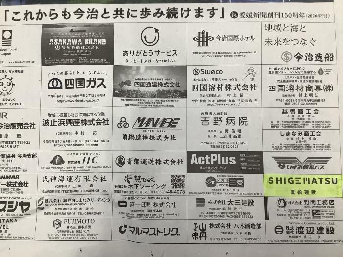 愛媛新聞は2026年に創刊から150年の節目を迎えられます おめでとうございます!
