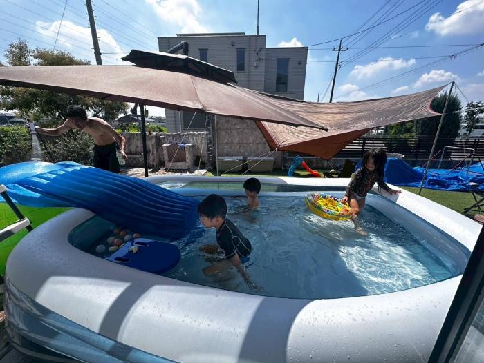 こんにちは、和希です。 先日友達の家でプールしました。 いつもは乗り気じゃない娘も友達がいると楽しそうにしていたのでよかったです。 自分の同級生に子供が生まれて、子供同士でまた仲良くしていると感慨深いものです。 さて、随時見学会行っております。ぜひお越しください! イベントはこちら