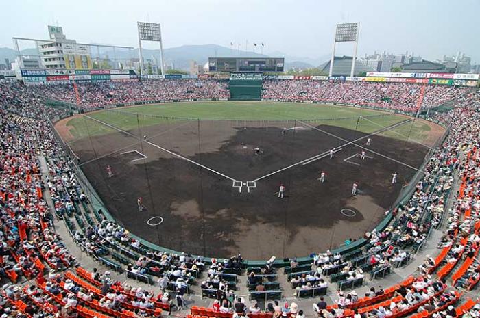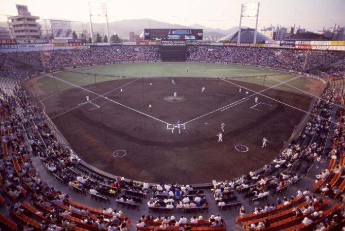 汚いトイレの横の階段を登って、ガラカラの外野席へ