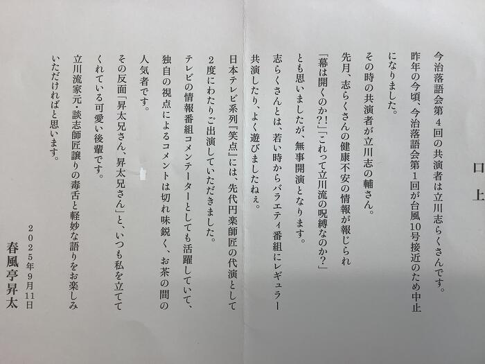 春風亭昇太プロデュース 今治落語会 第4回が開催されました