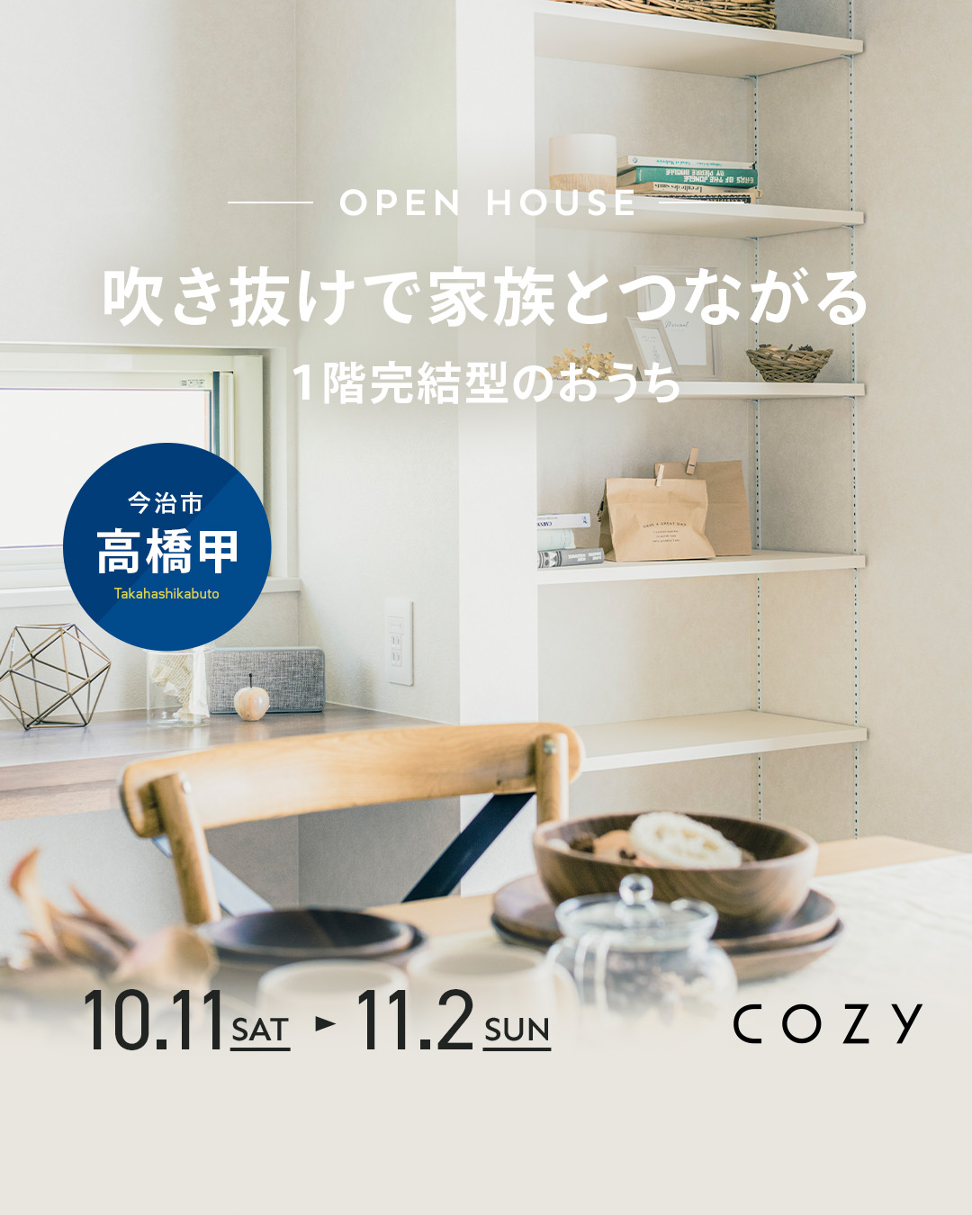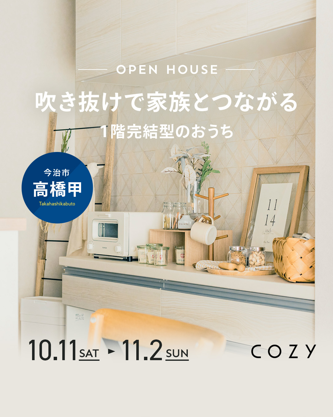 こんにちは、和希です。 今週もたくさんのお越しいただきまして誠にありがとうございました。 来週からも今治市高橋で吹き抜けのあるお家の見学会です。 見どころ沢山ですのでぜひお越しください!