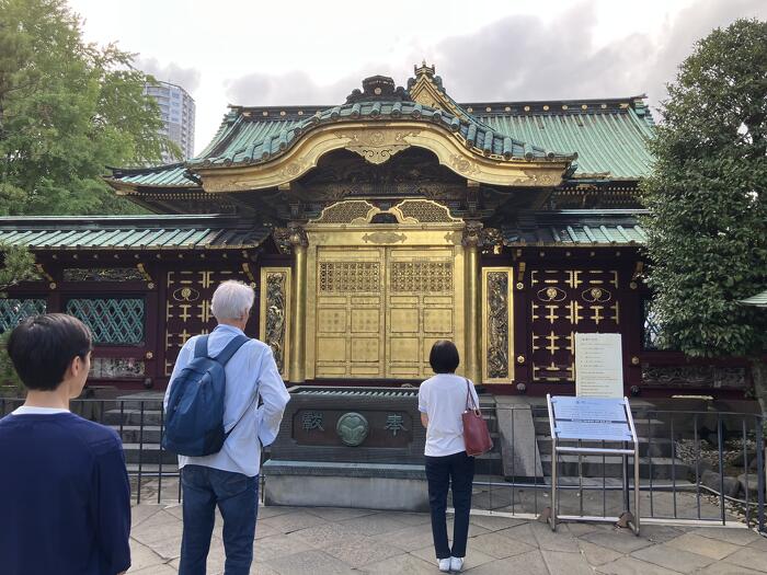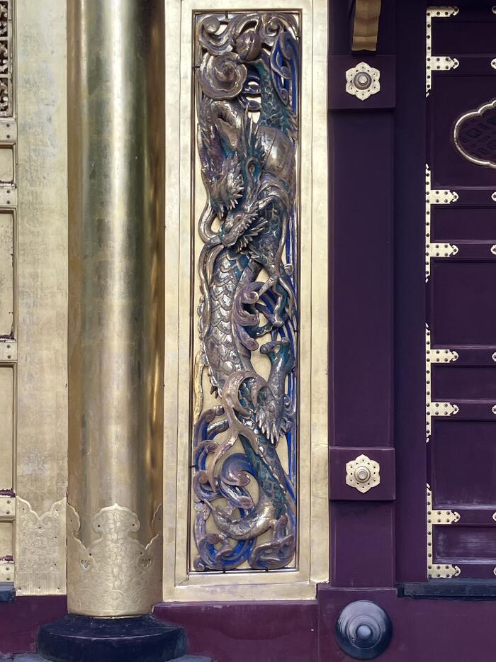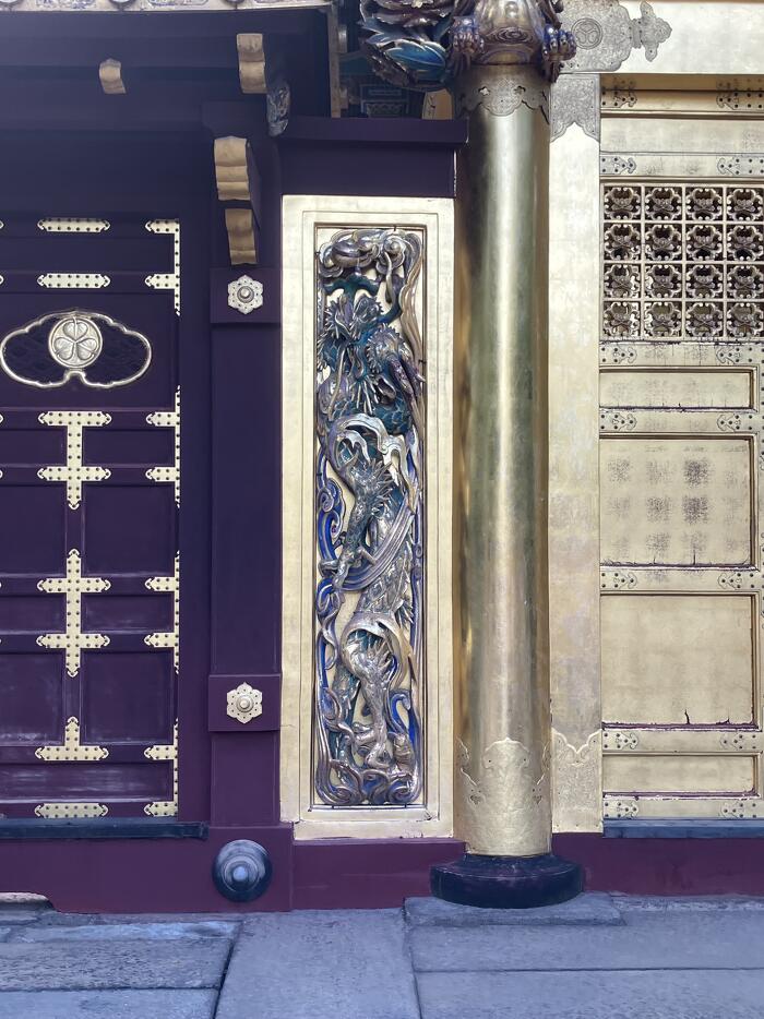上野東照宮唐門の黄金色の門扉をお守りしてる2体の龍を観るためです