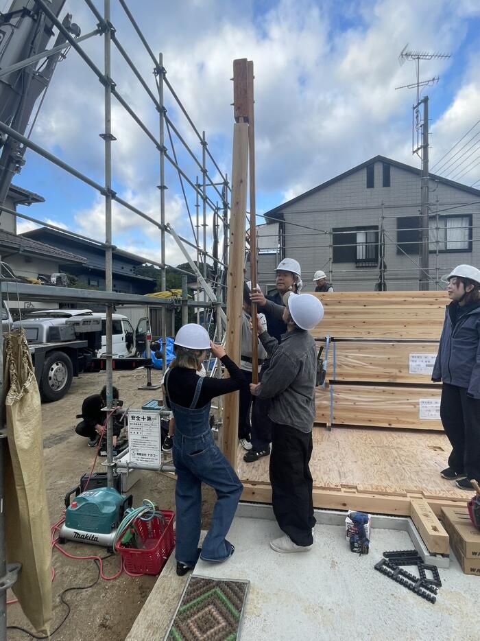 おはようございます! 朝から今治市大西にて上棟をしています!(^^)! 柱を1本目を建てていただきました♡ おめでとうございます!!!