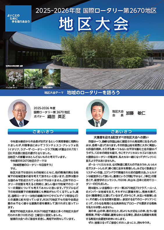 国際ロータリー第2670地区 地区大会が高知で開催されました