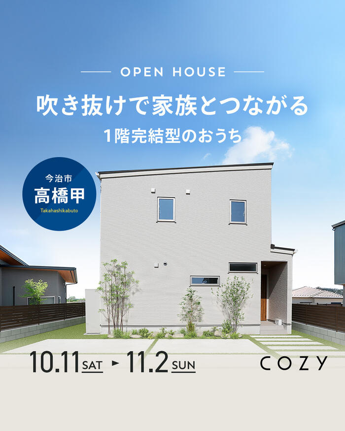 こんにちは、和希です。 先日年中さんになる子供の運動会に行きました。 去年よりもできることが増えて感動です。 さて今治市高橋で吹き抜けのあるお家の見学会を引き続き行っております。 ぜひお越しください!