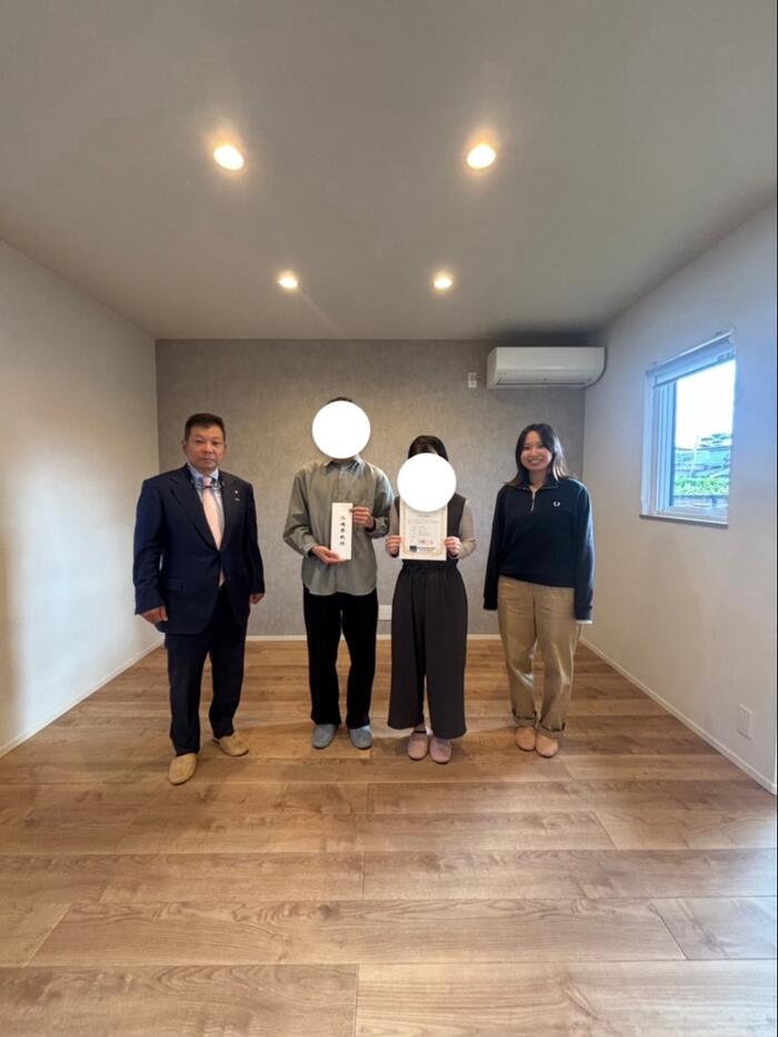 こんにちは、髙坂です。 先日お客様のお引き渡し式でした👏 長い間モデルハウスとしてお貸し頂きありがとうございましたm(_ _"m) 建設中には、二人目のお子様も生まれ家族4人でお引越し(^▽^)/ 子どもが小さい時、一軒家で過ごせるのって夜泣きの心配や音の心配など気にしなくていいので、いいですよね😊💕 これから、このお家でたくさんの思い出を刻んでいってほしいです! これからも末永くよろしくお願いします🏠✨