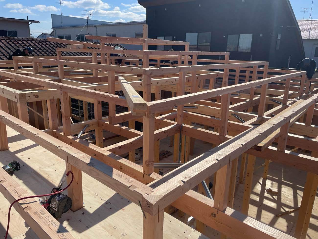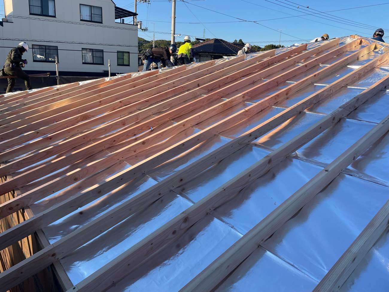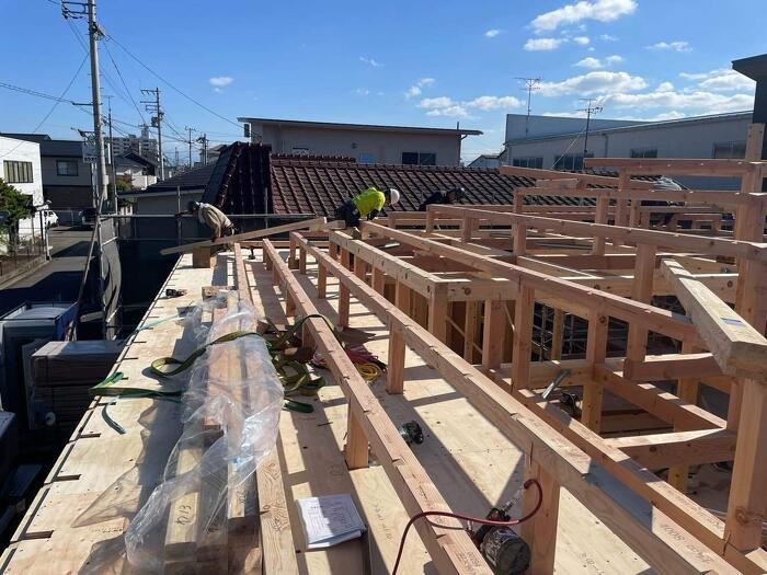 こんにちは。 馬越モデルハウス『imanowa』無事に上棟しました! 軒の出た方形屋根のおうちになります。 屋根には遮熱シートを採用しています。 2026年の2月ごろにモデルハウスオープンの予定です。 お楽しみに!!!