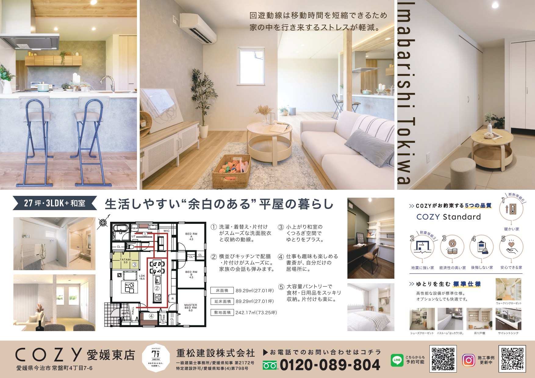 こんにちは、和希です。 今治市常盤町で平屋の見学会行います。 みんな大好き平屋の見学会ですのでぜひお越しください!