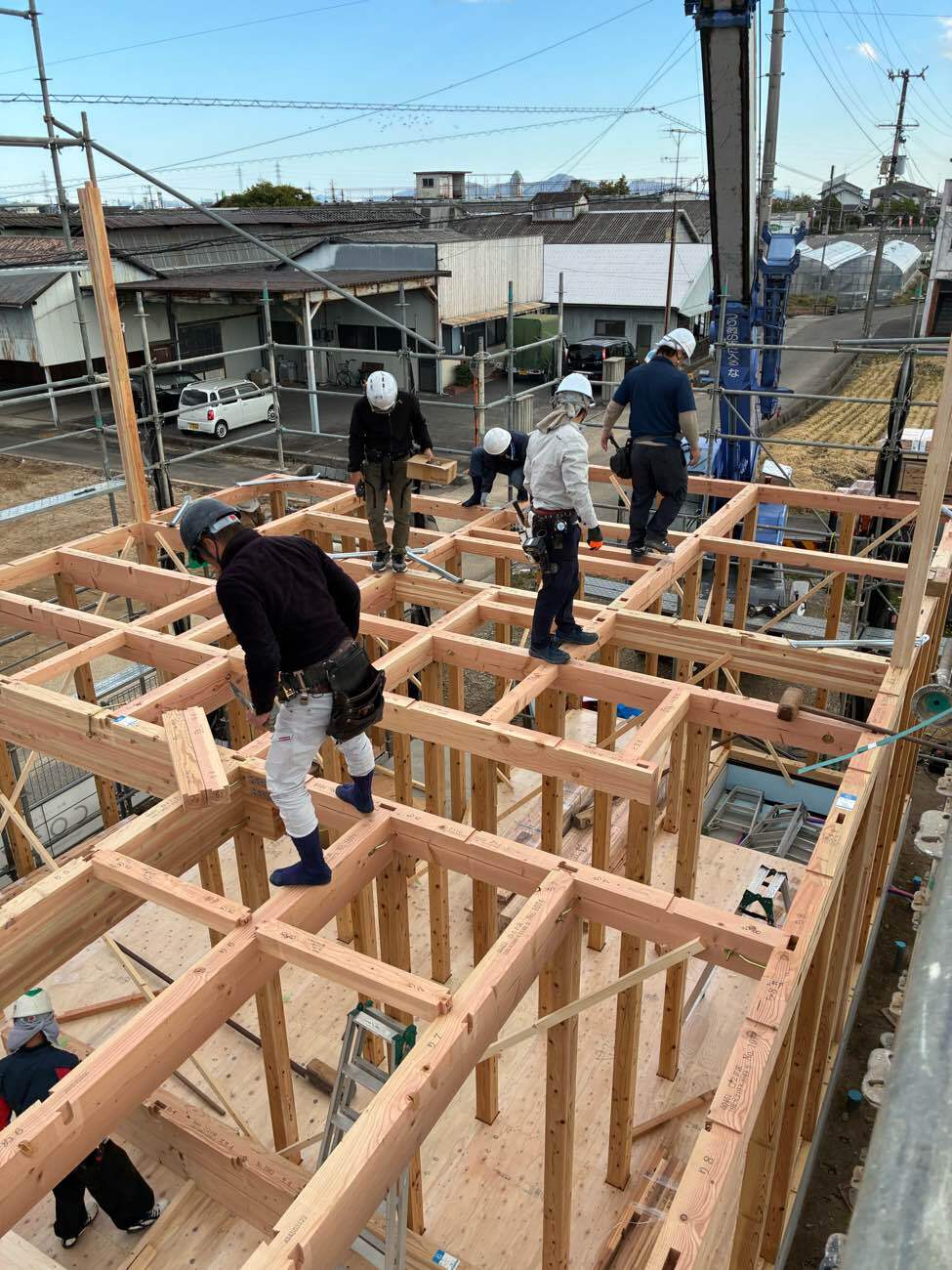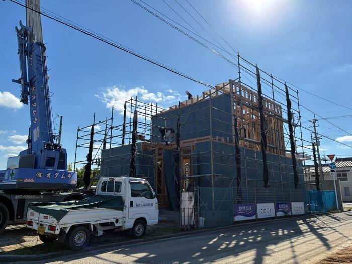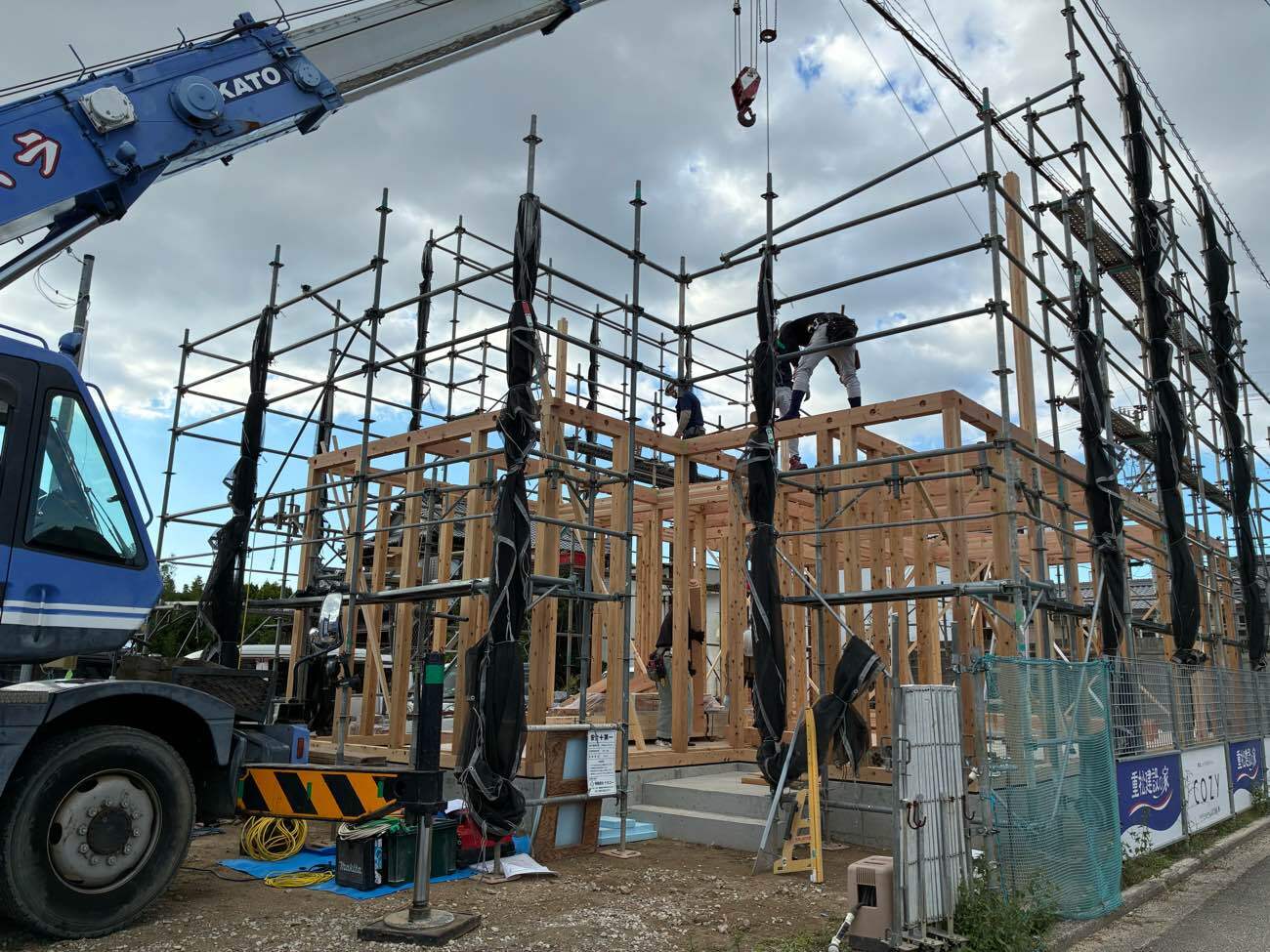 さて、先月29日に上棟が2棟同時で行われてまして、大忙しの日でした。