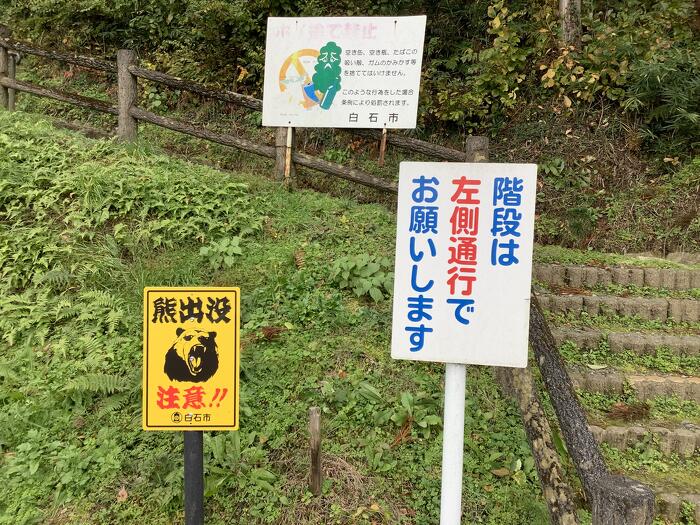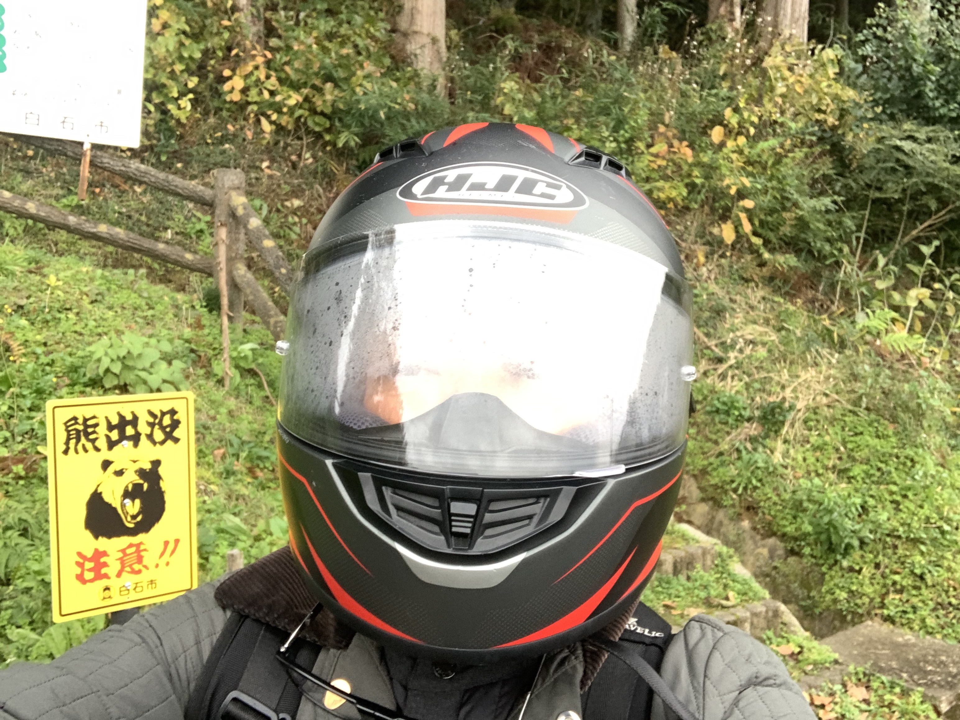 白石市内で「熊出没 注意!!」の看板のある所は、 バイクのフルフェイスを被ったまま移動しました!
