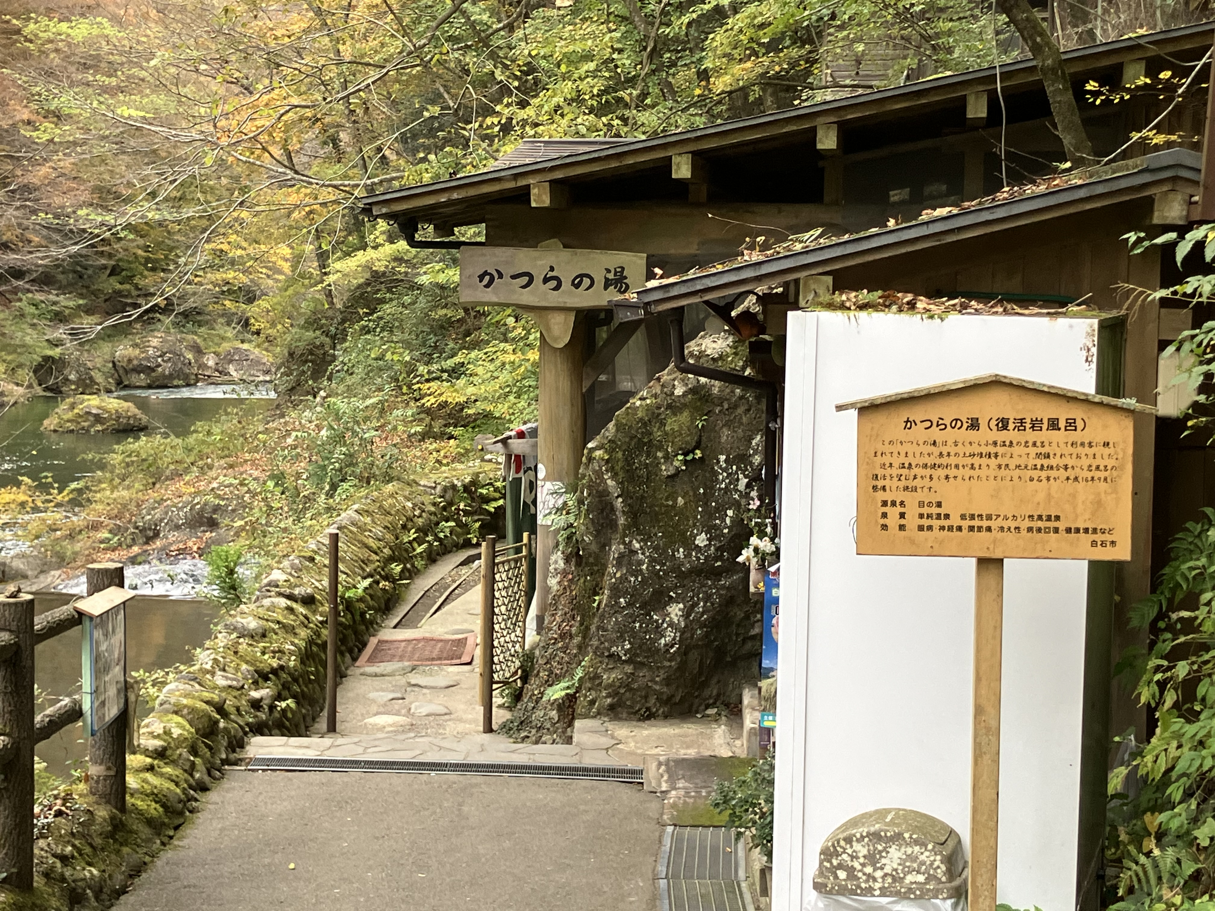 立て看板には、「復活岩風呂」と書かれてました 平成16年9月に復活した市営の岩風呂です
