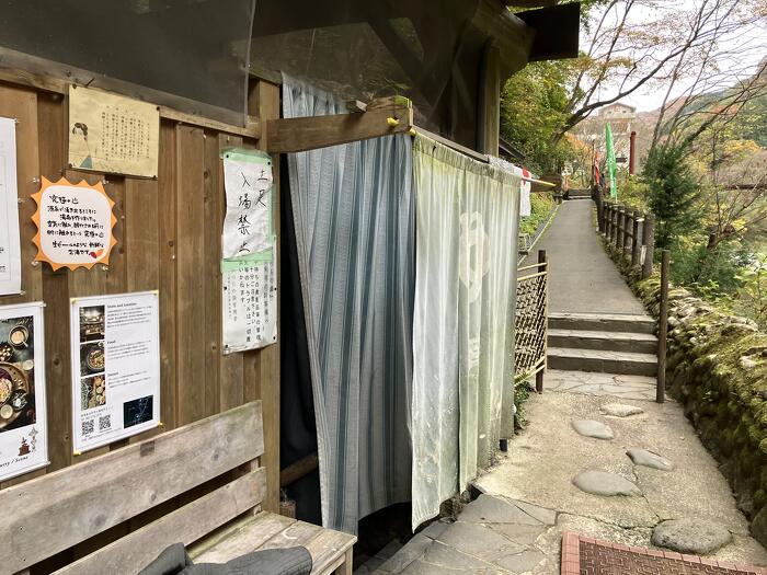 ここから階段を降りてゆくと 天然の岩風呂です 共同浴場です もちろん源泉かけ流し!熱い!