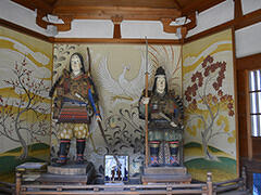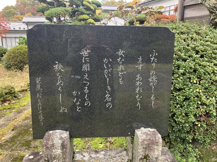 佐藤兄弟の妻の甲冑姿を拝観し、二人の妻のことを歌った歌碑がありました