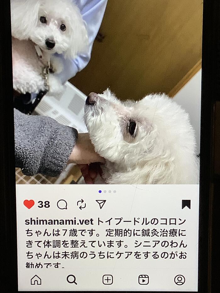 「重松さん、コロンちゃんインスタに上げていいですか?」 「どうぞどうぞ」 しまなみ動物治療院のインスタライブにデビューしました
