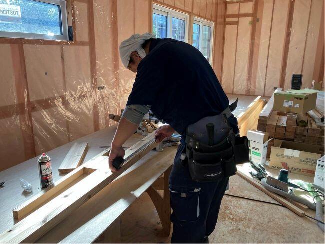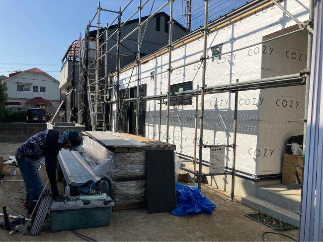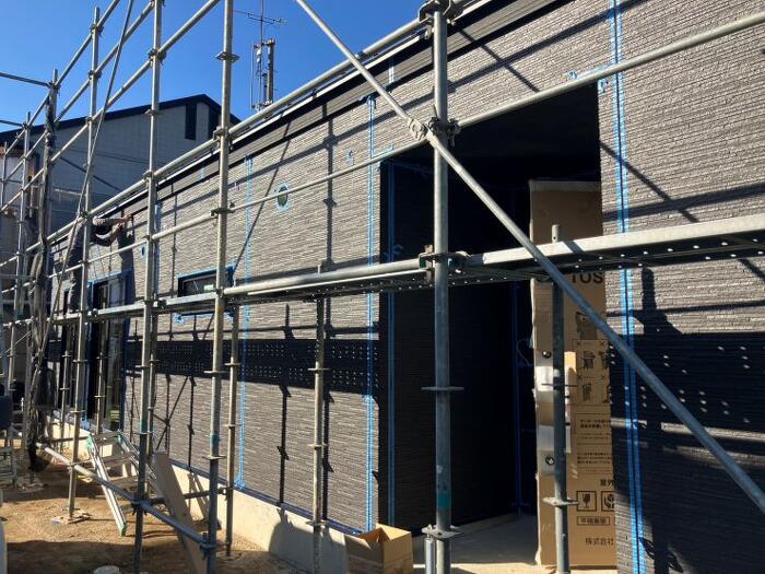 外壁ボードが貼られて、コーキング工事も行いました(*'▽')