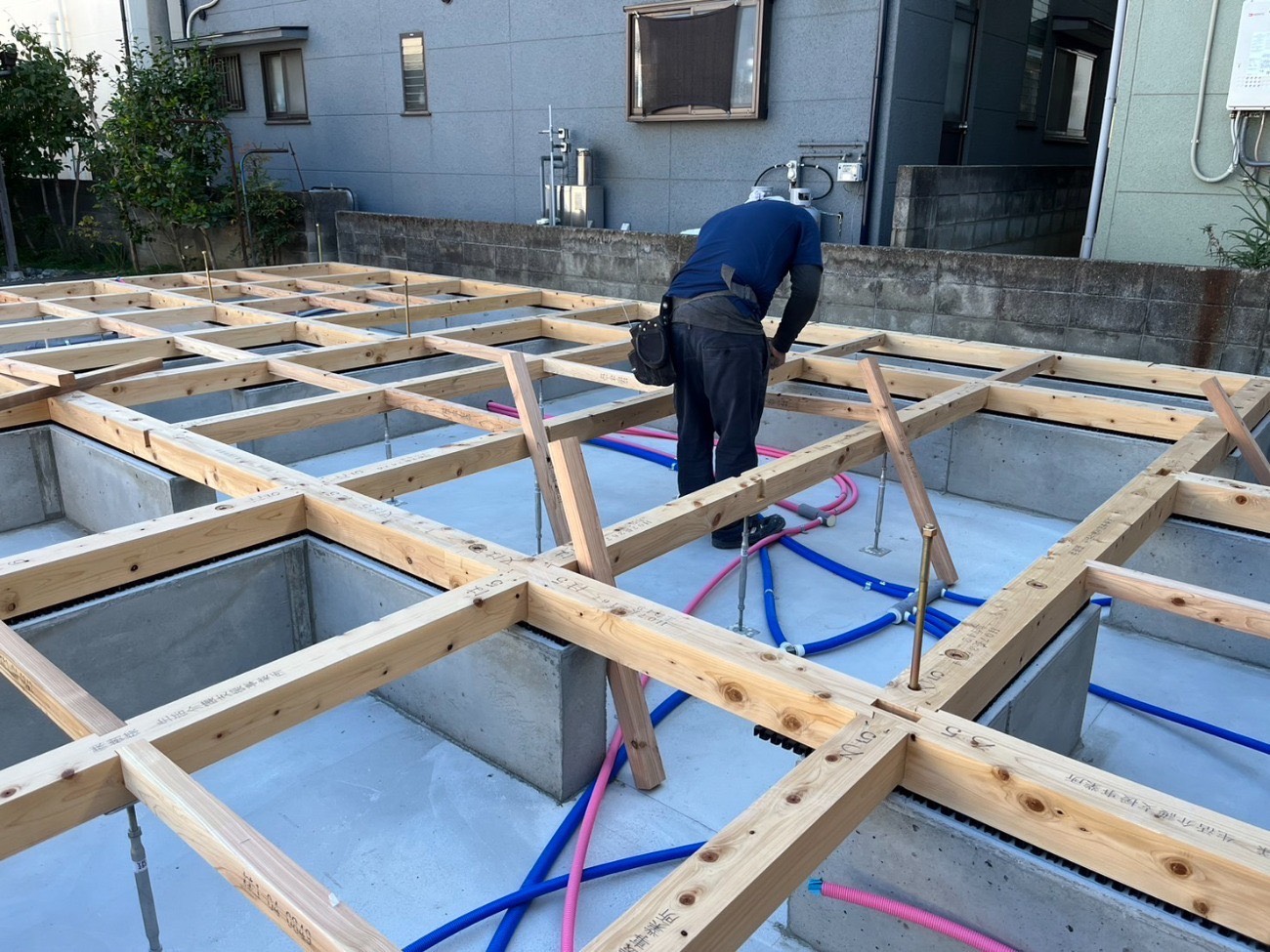 少し狭い敷地ですが、 基礎工事・上棟と順調に進みました。 これから大工さんどんどん進めていきます!