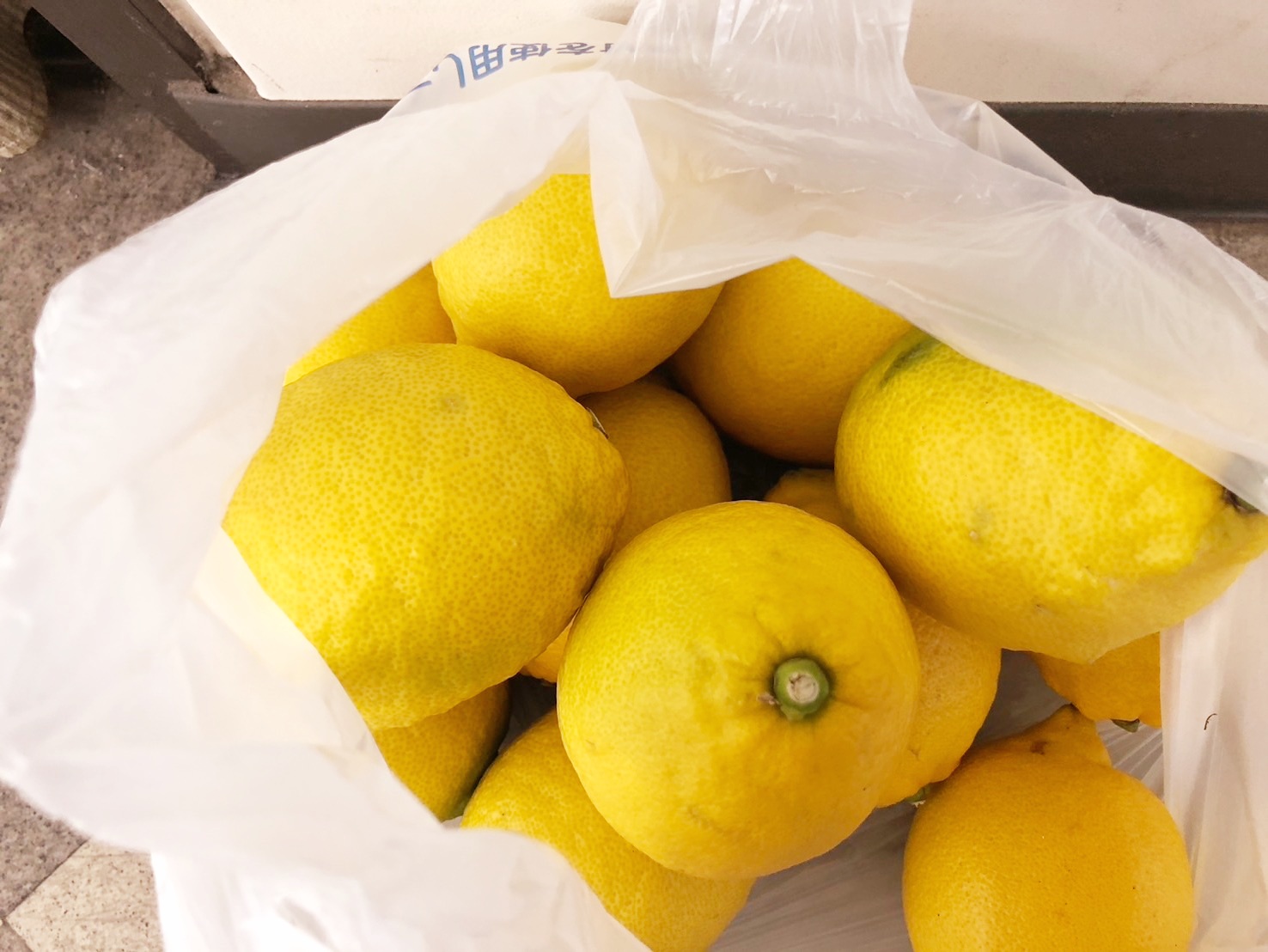 親戚がお裾分けにたくさんもらったのを更にうちにたくさんお裾分けされ、更に更に会社にお裾分けされた島レモンです。