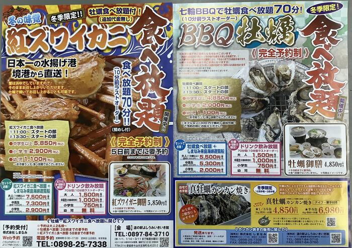 紅ズワイガニと牡蠣のチラシもあって、